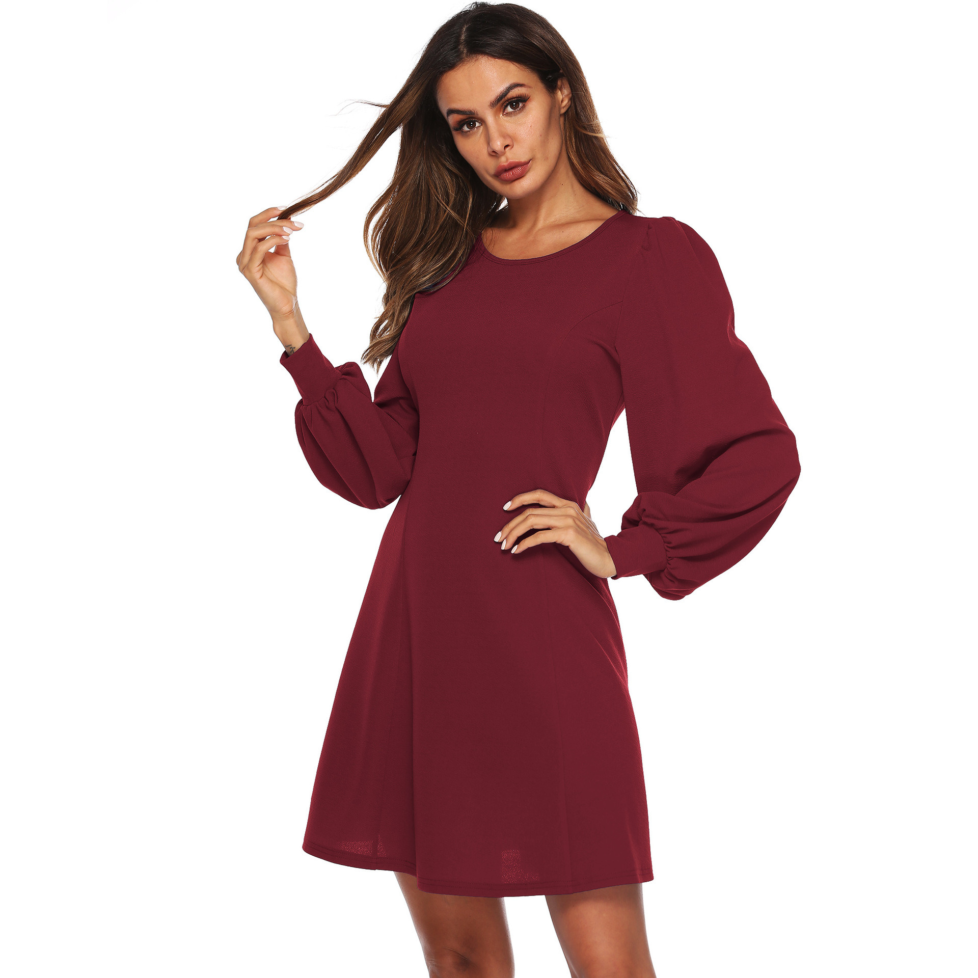 Be the first to review “New Dress Female Long Sleeve Slim Autumn and Winter High Collar Lantern Sleeves Solid Color”