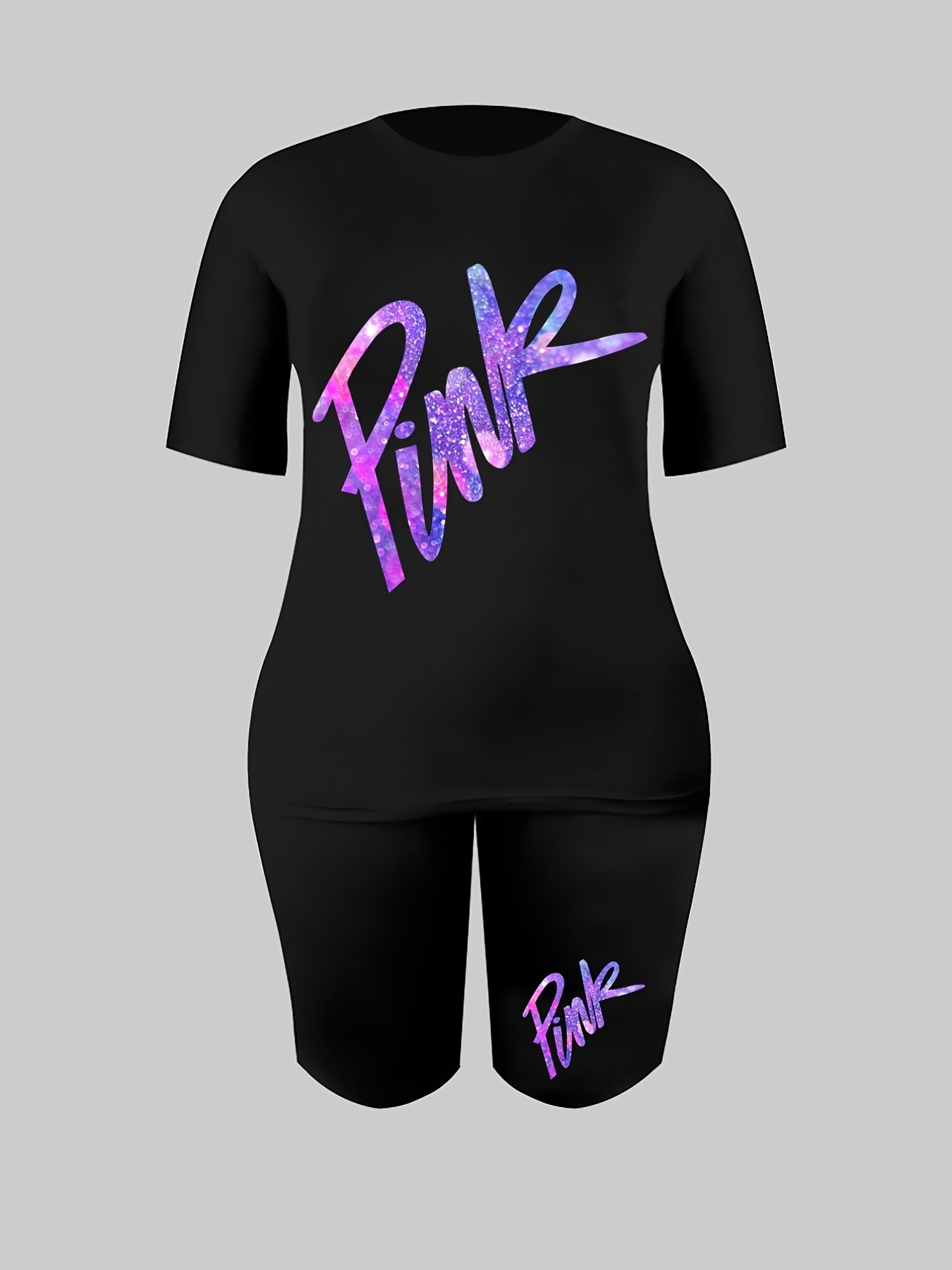 Stay comfortable and stylish with the Plus Size Casual Outfits Set, featuring a Women's Plus Gradient Letter Print Short Sleeve Tee & Shorts 2pcs Set. This set combines casual ease with a trendy design, perfect for relaxed days or casual outings.