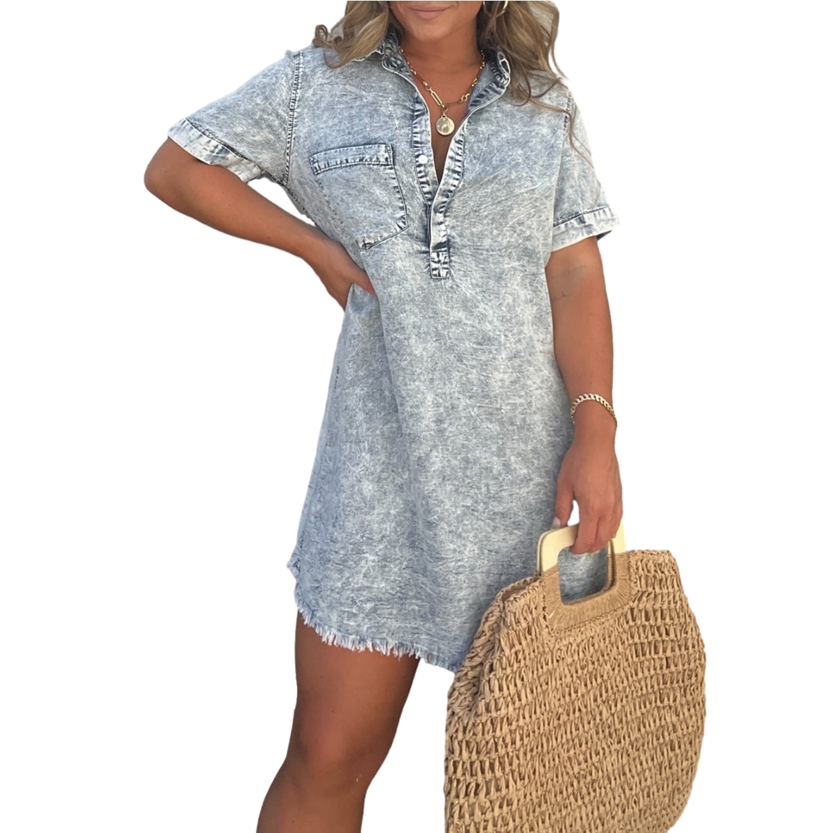 Experience the perfect mix of casual elegance and trendy style with this versatile denim shirt dress. Whether you’re heading out for a casual day or dressing up for an evening event, this dress is your go-to for effortless chic.